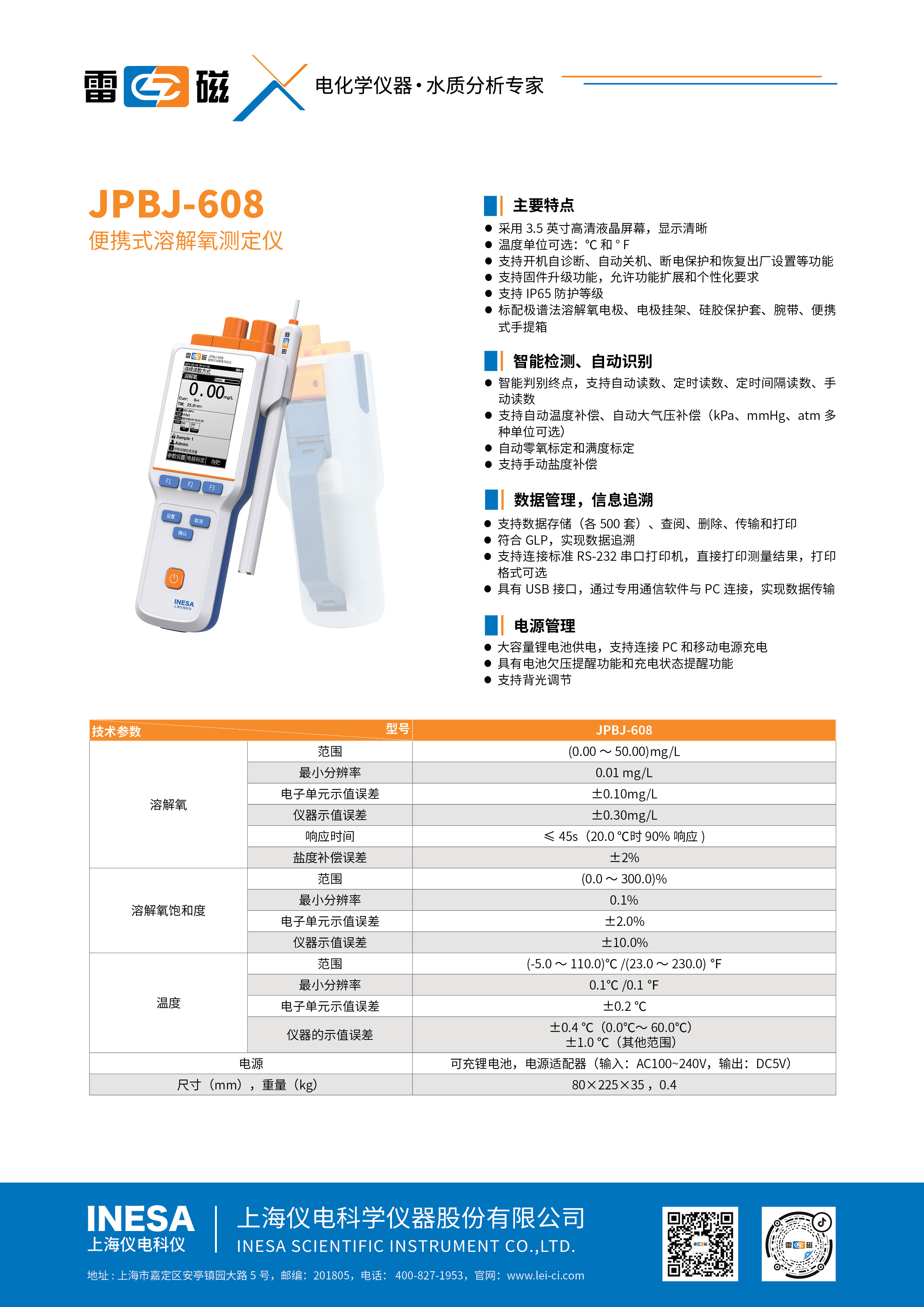 JPBJ-608 Portable dissolved oxygen detector