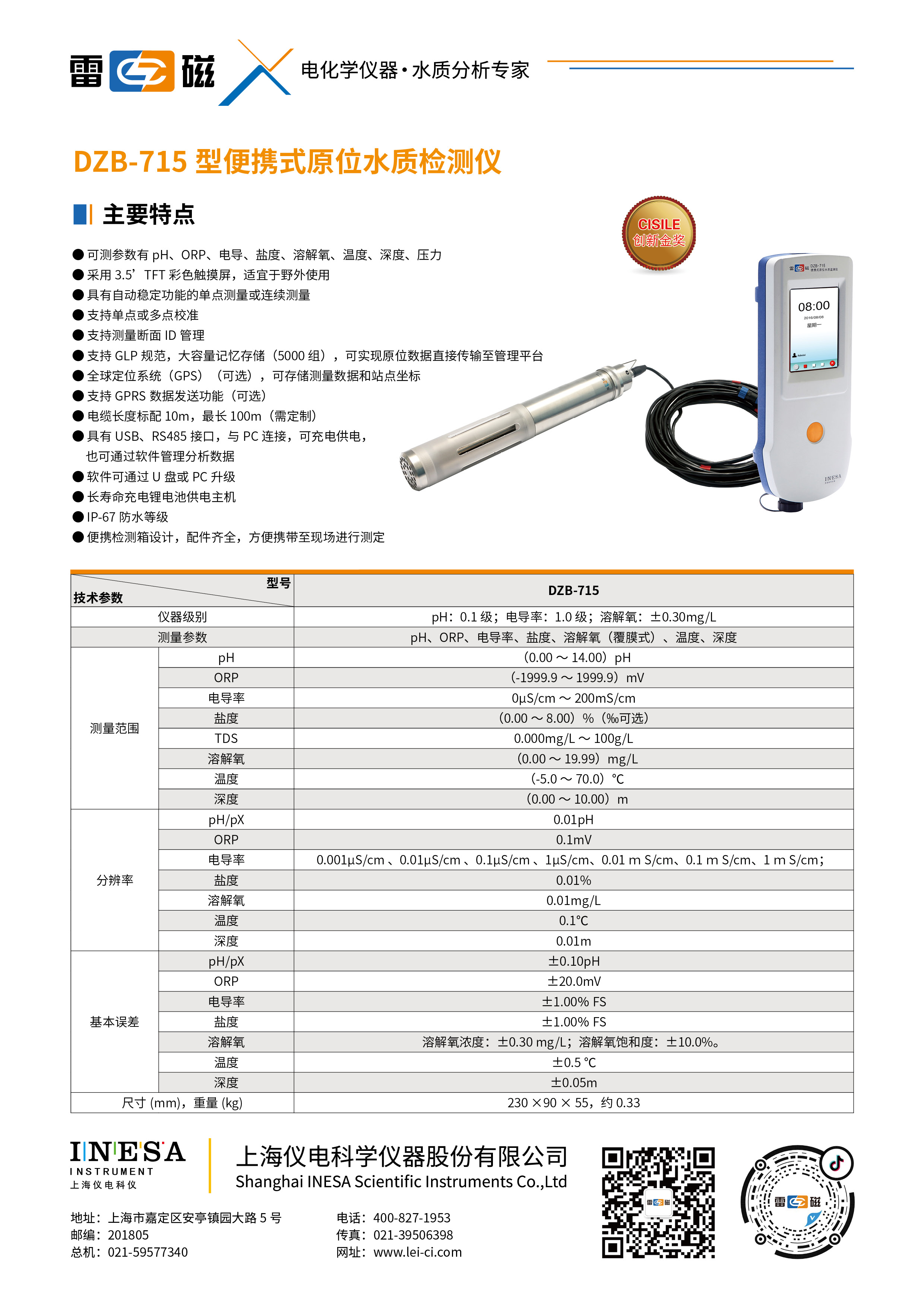 Dissolved oxygen | Dissolved oxygen concentration: ±0.30 mg/L; Dissolved oxygen saturation: ±10.0%。 | |