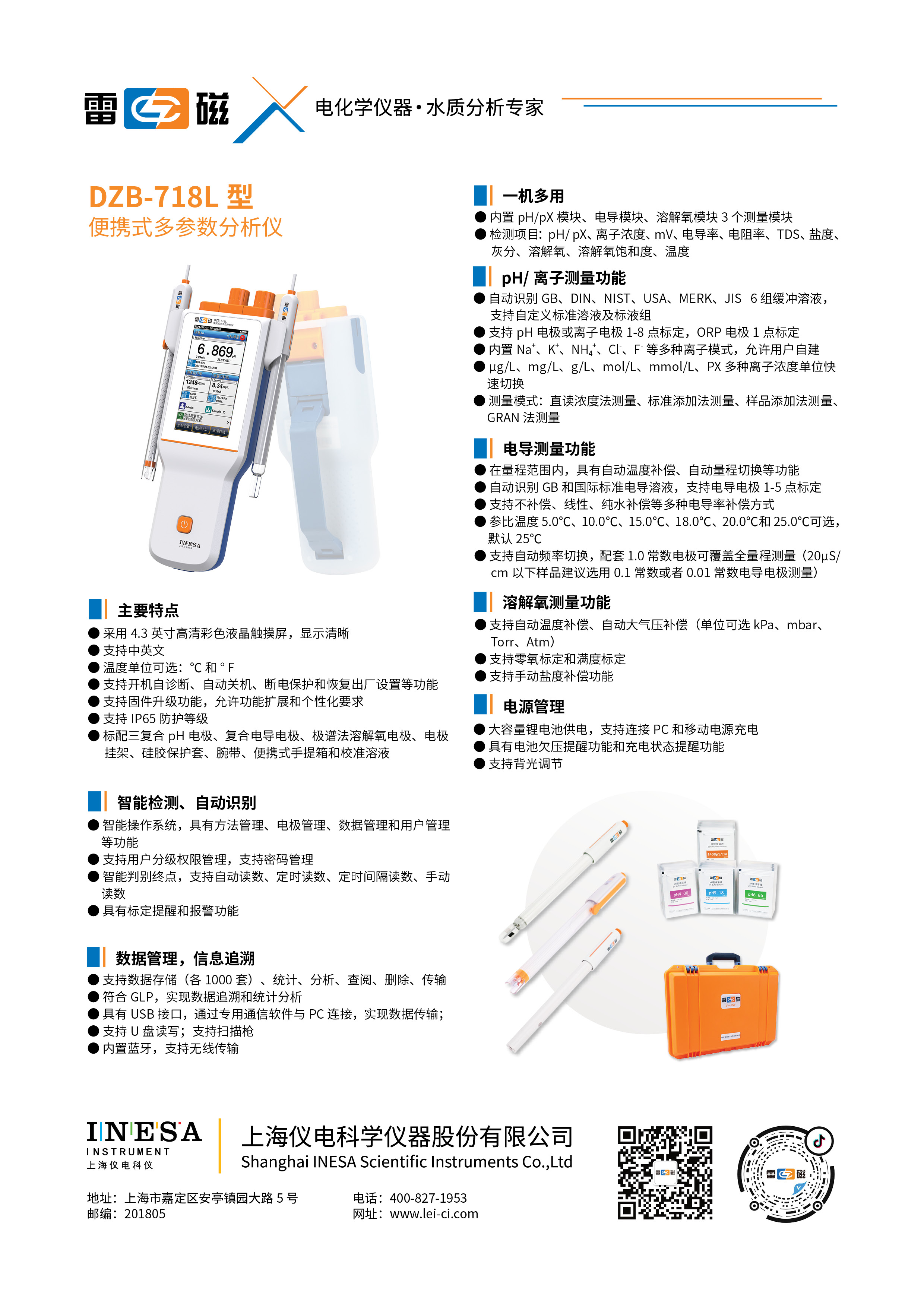 Ø Supports automatic identification of conductivity standard solutions, default 4 types JJG Standard standard liquid, supports multi-point correction of up to 5 points;