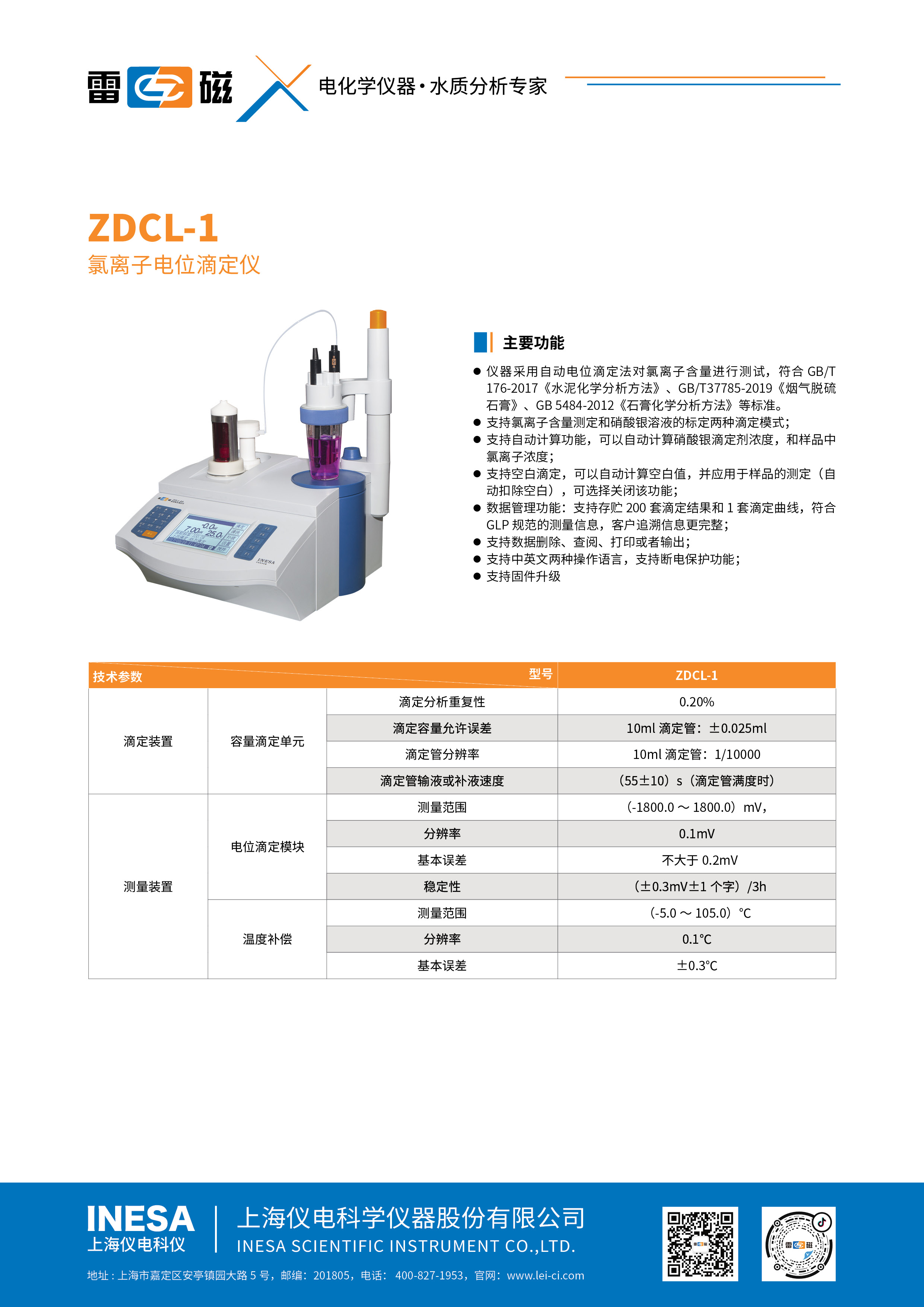 ● The instrument has multiple modes, supports chloride ion determination, calibration of the concentration of silver nitrate standard titration solution, and corrects the blank volume.;