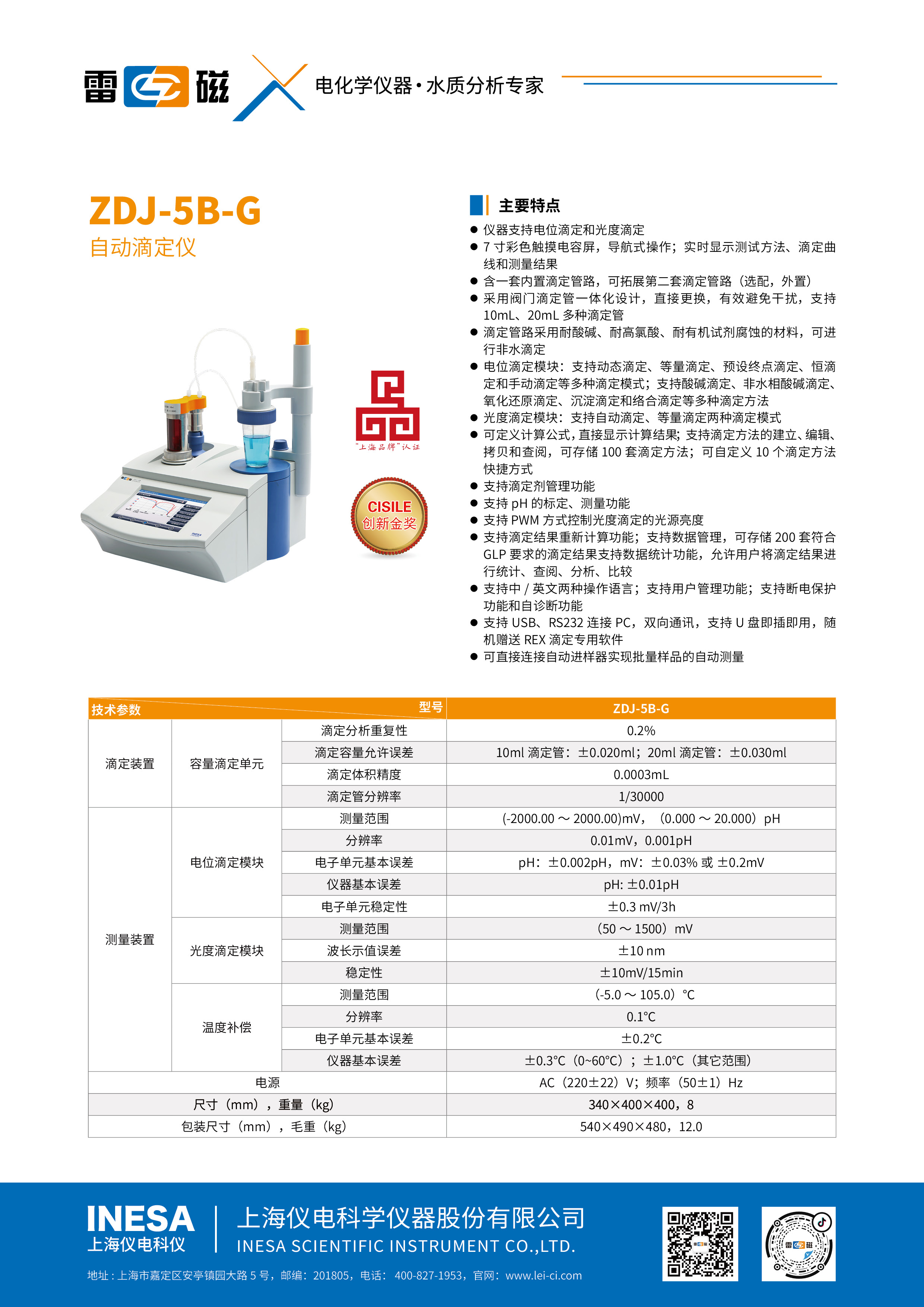 Test quantity Pack Set | Potential titration Module | Measurement range | (-1999.0~1999.0)mV,(0.00~14.00)pH |