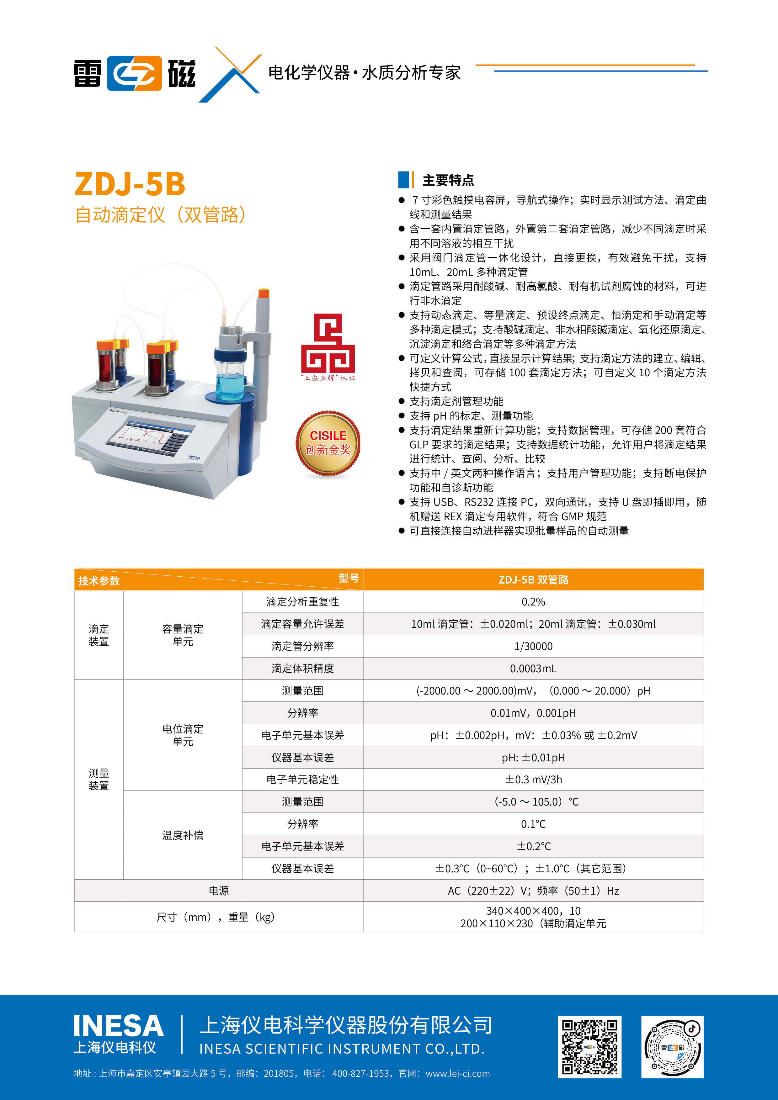 l Supports various titration methods such as acid-base titration, redox titration, precipitation titration, complex titration, and non-water titration.; Supports the establishment, editing, copying and review of titration methods ; support pH Measurement function;
