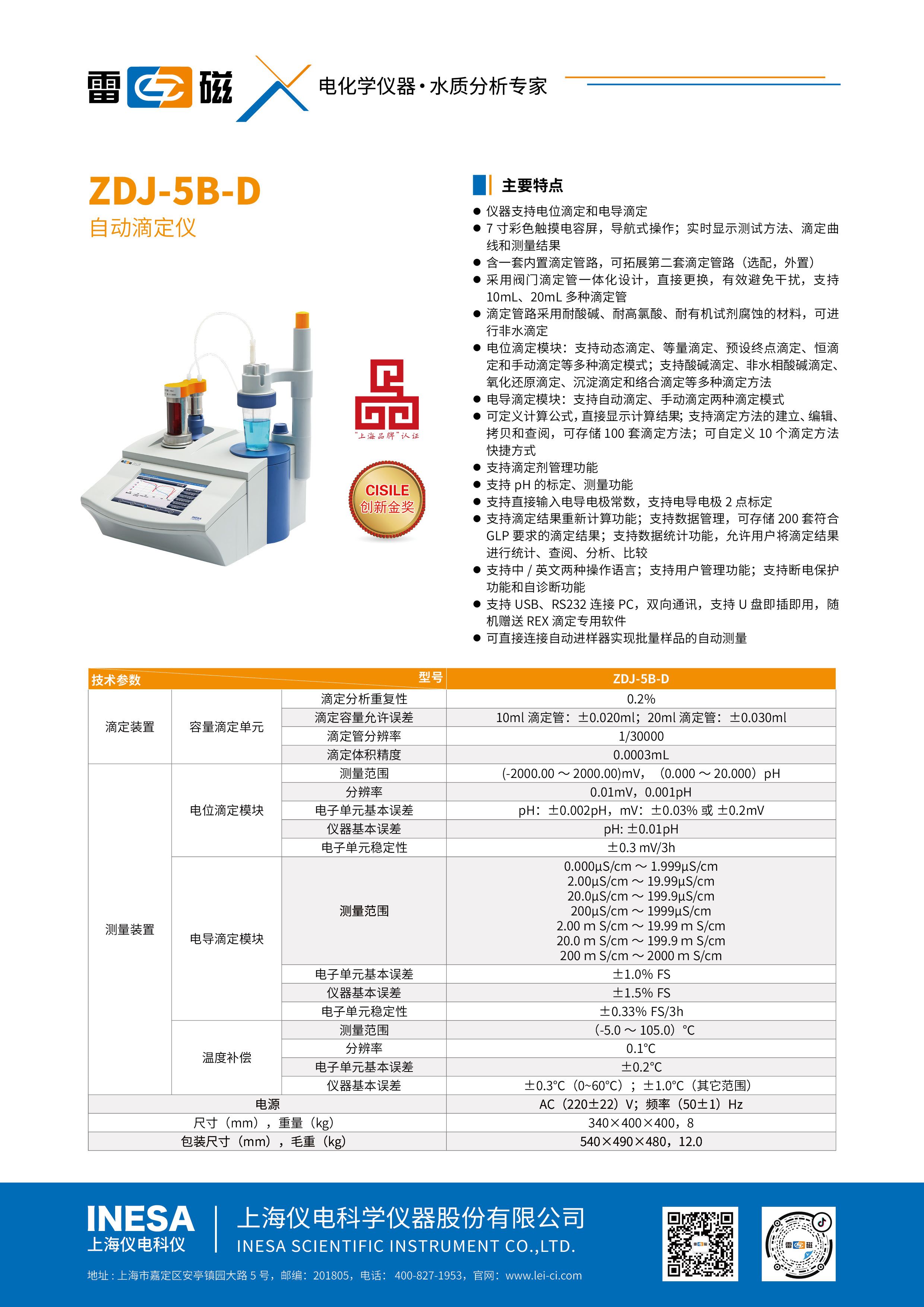 Test quantity Pack Set | Potential titration Module | Measurement range | (-1999.0~1999.0)mV,(0.00~14.00)pH |
