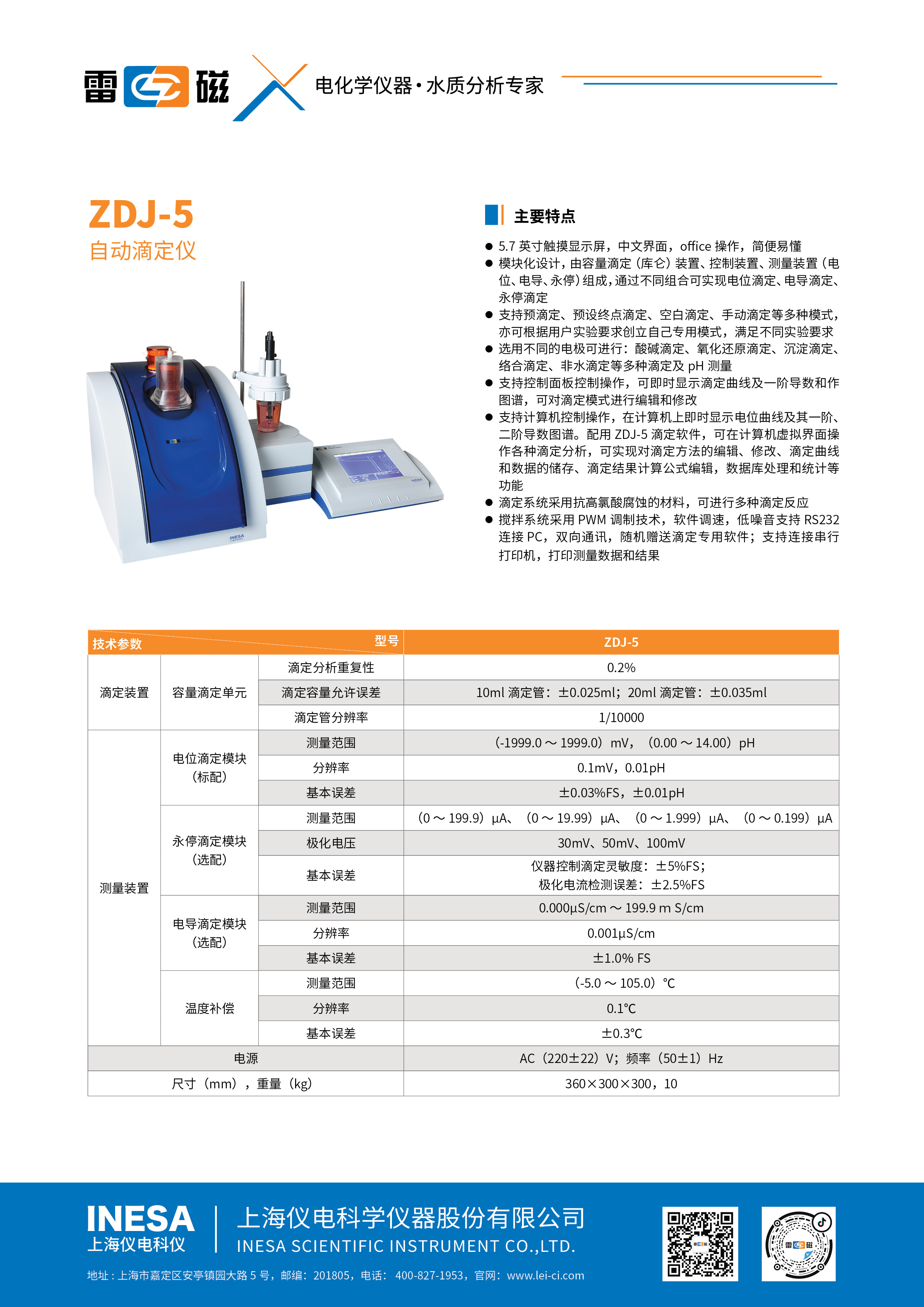 Test quantity Pack Set | Potentiometric titration module (Standard) | Measurement range | (-1999.0~1999.0)mV,(0.00~14.00)pH |