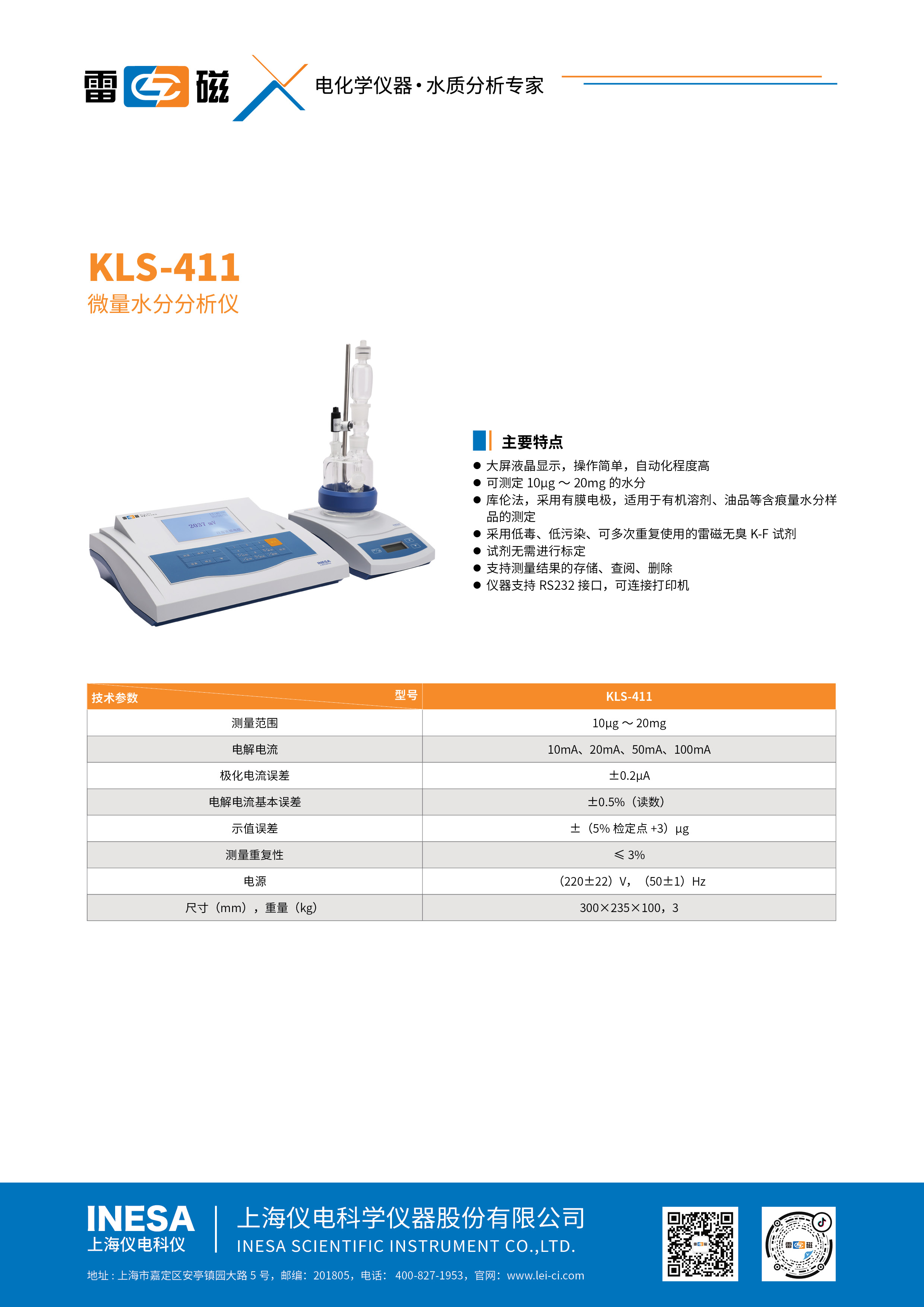 10 can be measured μg~20mg The moisture of;