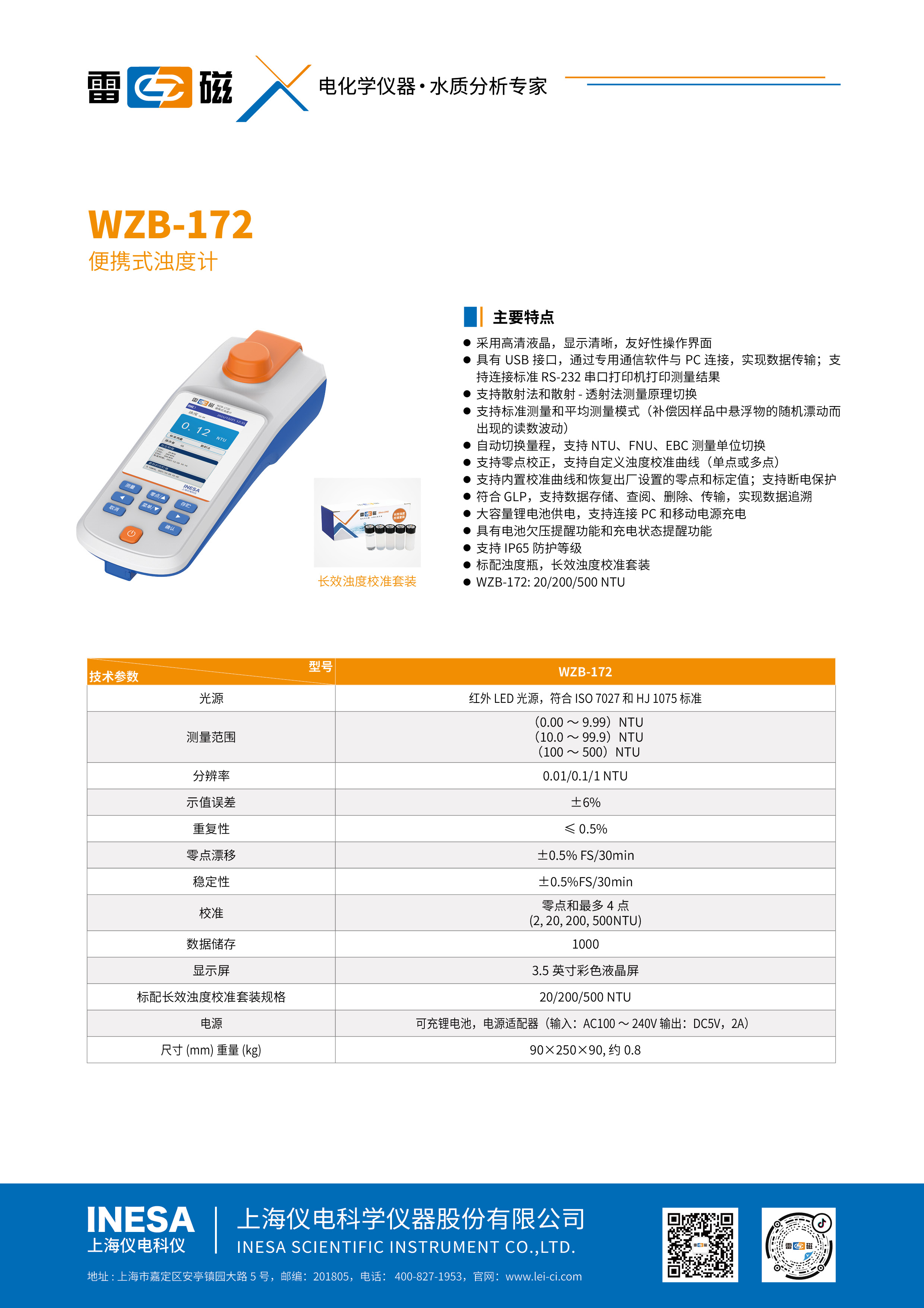 Measurement range | (0~20.00)NTU,(20.0~500.0)NTU |