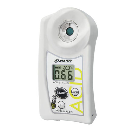 PAL-EasyACID9 The kit in the pineapple digital acid meter with scale set is specially used to measure the acidity of pineapples. The measurement steps are simple and convenient. Compared with traditional manual titration methods, no chemical reagent is required. The acidity content of the sample is measured by observing the current flow through the conductivity method. Test box set includes: one host, one electronic scale, 100 ml One beaker, 1 ml A spoon, AAA Two batteries.