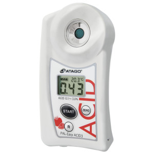 PAL-EasyACID3 The kit in the tomato digital acidity meter with scale set is specially used to measure the acidity of tomatoes. The measurement steps are simple and convenient. Compared with traditional manual titration methods, no chemical reagents are required. The acidity content of the sample is measured by observing the current flow through the conductivity method. Test box set includes: one host, one electronic scale, 100 ml One beaker, 1 ml A spoon, AAA Two batteries.