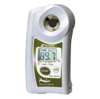 PAL-BX/RI Measurable Brix (Measurement range 0.0-93.0%, accuracy Brix ±0.1%)and refractive index (Minimum scale 0.0001 )dual scale products. The refractive index scale can also display temperature. PAL-BX/RI Almost all samples can be measured.