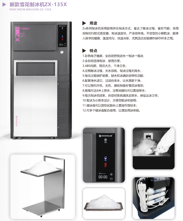 Product features: Color electronic touch screen, fully automatic control of water inlet →Ice making →Falling ice